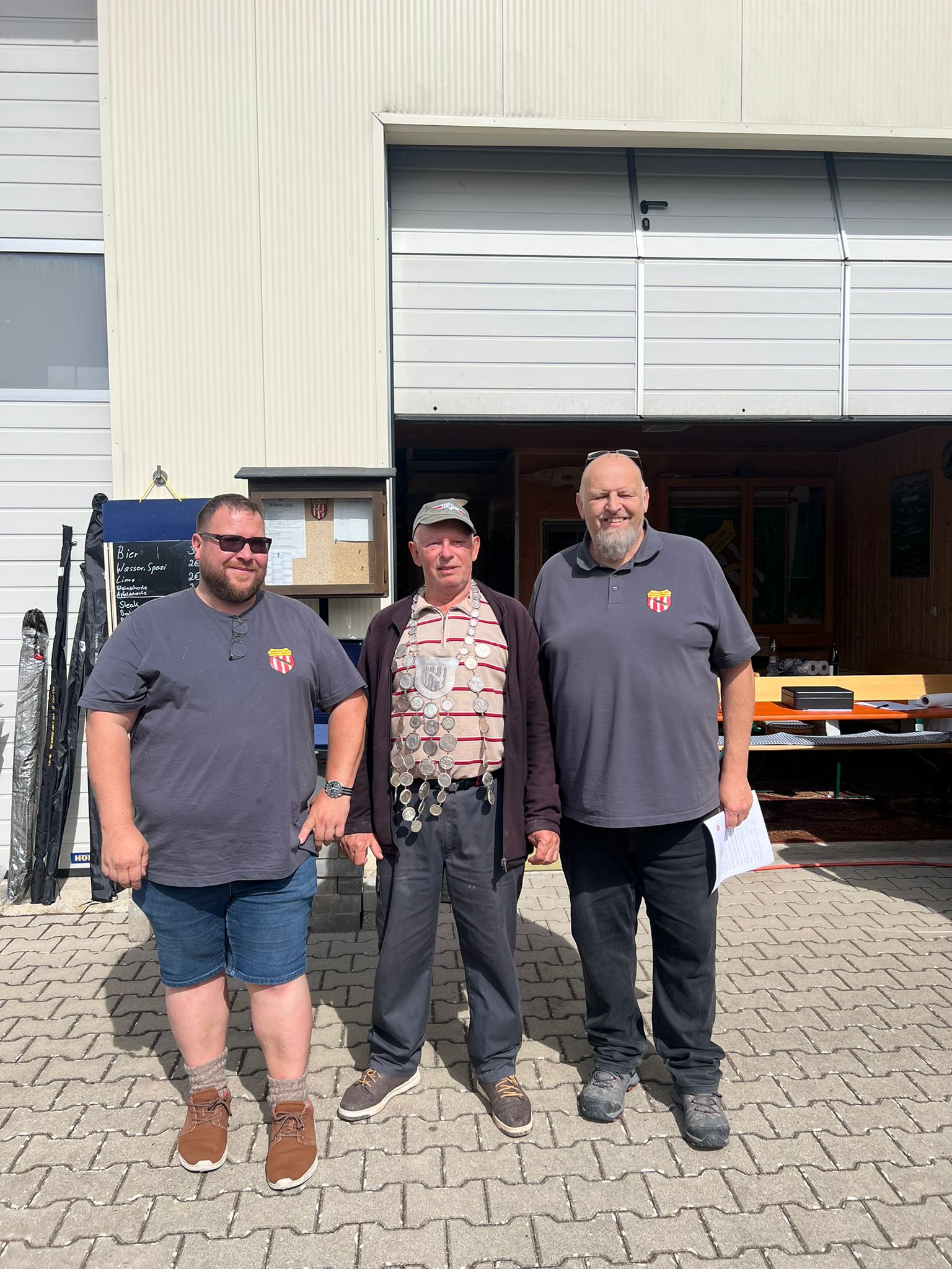 Die Vorstände Tom Lang und Jonathan Meixner beglückwünschten die Sieger, hingen Eduard Lang die Königskette um und verliehen Johann Meißel den verdienten Pokal.